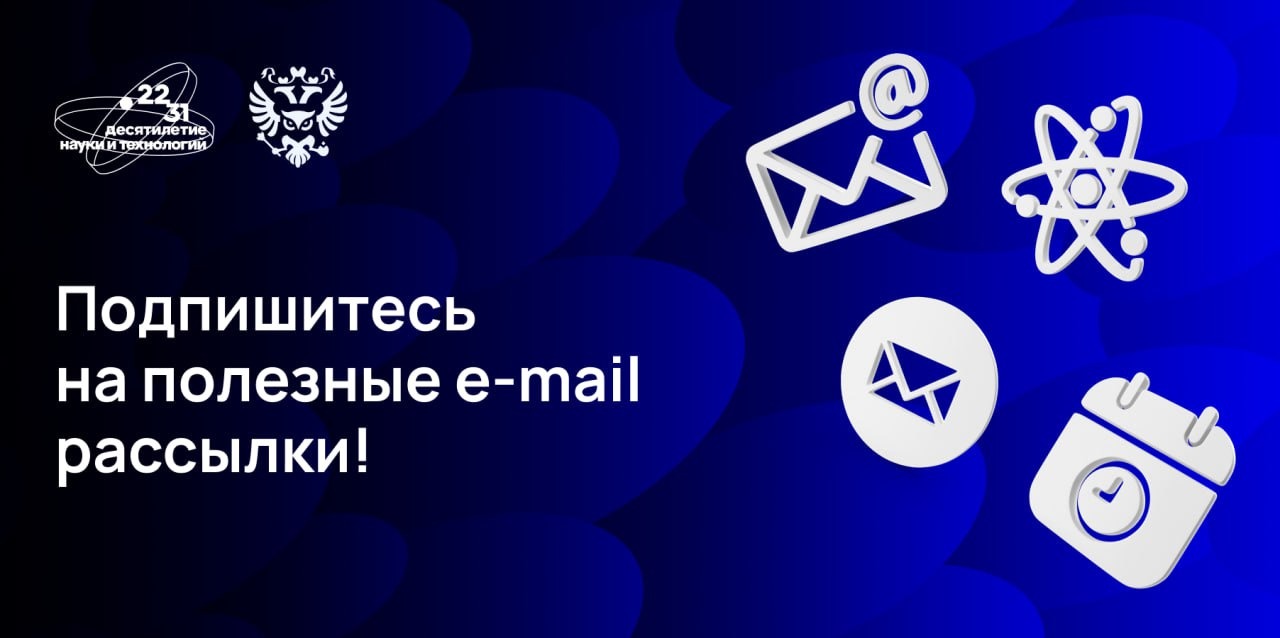 2) Рассылка новостей и полезных материалов от @npnauka – официального ресурса Десятилетия науки и технологий. Рассылка будет полезна как ученым, так и всем, кто интересуется современной наукой. Подписаться можно тут (https://xn--80aa3ak5a.xn--p1ai/#subscribe).
